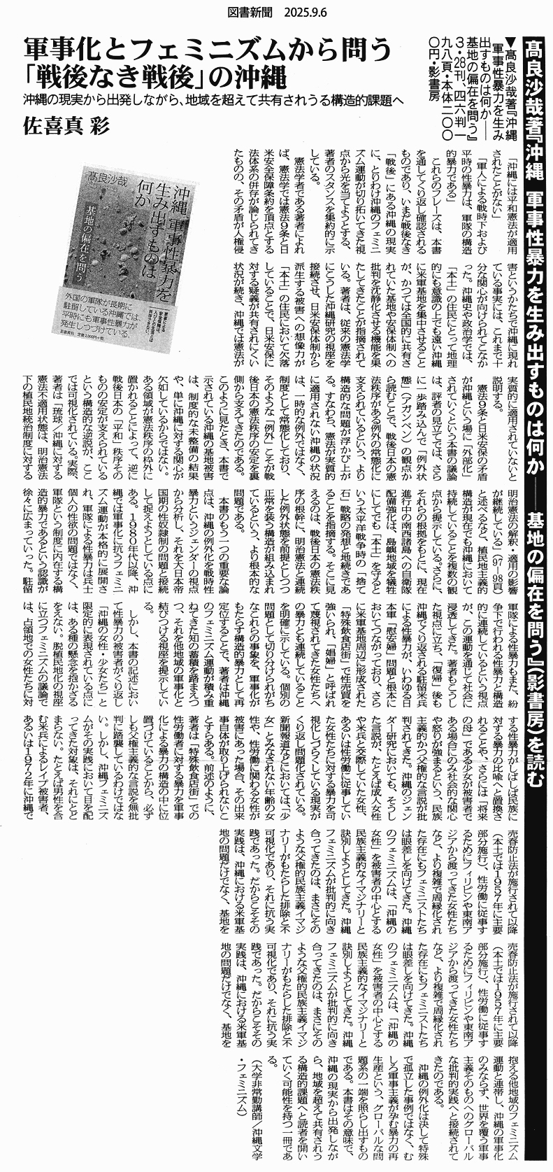 評者:親川裕子さん(Be the Change Okinawa代表、大学非常勤講師)